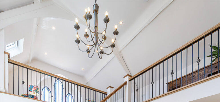 The show aired earlier this month and is still available on catch up should you wish to see this inspiring home build. We love the story telling behind the scenes and seeing an old property so well preserved as a family home is testament to Stuart and his family who own it. I had the pleasure of meeting them on site back in June when we delivered the centrepiece Light Burnished Hartcliff chandelier that is displayed in their main entrance/mezzanine – hope you agree it looks stunning and compliments the room really well.