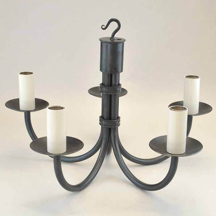 The 'tiny' Hartcliff chandeliers may be small but remain one of our most popular designs as they fit in such an array of homes. From country cottage to modern detached homes with contemporary décor, this handmade wrought iron pendant light punches well above it's size. Starting with the original Hartcliff 5-light design we chopped out almost 300mm from the overall height to ensure it fitted into the typically reduced ceiling height of a cottage or modern home. At just 340mm overall this allows around 2metres clearance in most homes. Perfect for the living room or over a dining table the mini chandelier can be dressed up with fabric lampshades for a unique style or kept traditional in black with ivory tubes. The E14 fitting suits our IRIS led bulb although other styles are available. This delightful chandelier is available to order now, handmade just for you by contemporary blacksmiths. Larger sizes are available.