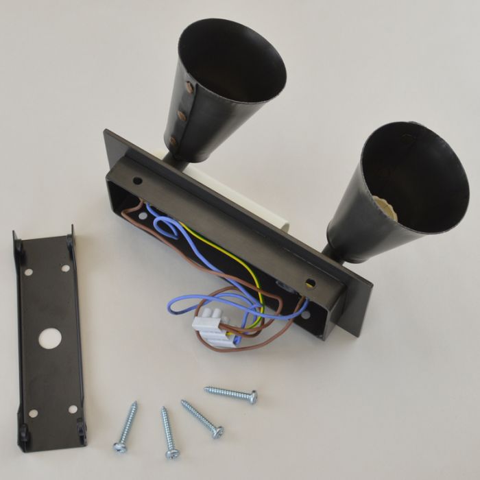 The Illions spotlight range is available in 2 styles and 2 finishes - choose a hammered or punched spotlight hood with contrasting copper rivets. This double set features a pair of pivoting and rotating heads allowing you to position the spotlight as required from a single connection and our choice of LED GU10 lamp (available separately) will illuminate your home. The detailed ceiling plate is handforged with a fullered back plate and the steel cones are carefully wrapped around the GU10 fitting. Wall or ceiling mounted, these easy to install spotlights require no special wiring and are mains compatible and dimmable. Perfect for kitchen, hallway or living areas.